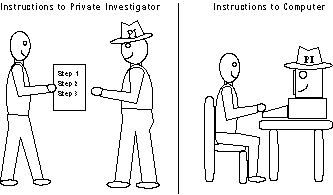 Imagine that you've hired a Private Investigator (PI). He knows how to do his job, but he won't know what you want him to do unless you give him a list of instructions. Similarly, a computer knows how to do its job, but it won't know what you want it to do unless you give it a list of Program Instructions (PI). |