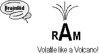 VAWL-uh-TIIL) Volatile means temporary or unstable. With current technology, RAM requires constant power to hold its switches On. When you lose power, even for a fraction of a second, all switches turn Off. When all switches turn Off, the Off/On patterns representing your instructions and data are lost. This volatile or temporary nature makes RAM potentially dangerous--so I encourage you to form the habit of saving your data to magnetic disk every few minutes! |